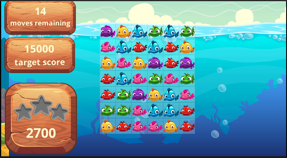 Code Rush is a vibrant and engaging 2D match-3 puzzle game where players swap animated fish characters to align three or more of the same type in a row or column. Set in an underwater world filled with cheerful aquatic creatures and colorful coral environments, the game challenges players to think strategically within a limited number of moves while aiming to reach target scores and earn stars.